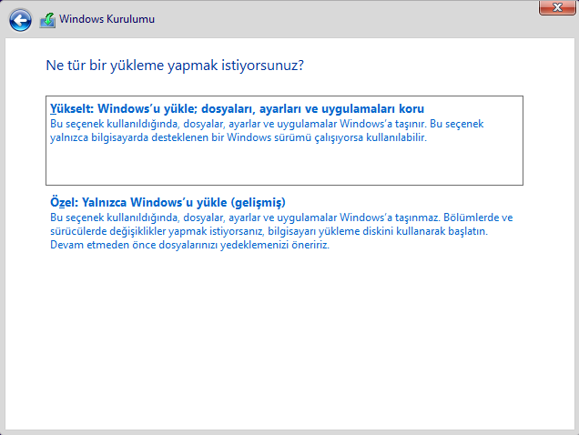 Windows 10 ISO'sunu indirip Rufus ile USB belleğine yazdıracaksın. Daha sonra bilgisayar açılırken USB üzerinden boot edeceksin. Bunlar rehber videolarında uygulamalı anlatılıyor zaten. Attığım görüntü kurulum aşamalarından birinde karşına çıkacaktır. Yükseltme ile devam edersen uygulamaların ve dosyaların korunarak kurulum yapılır.