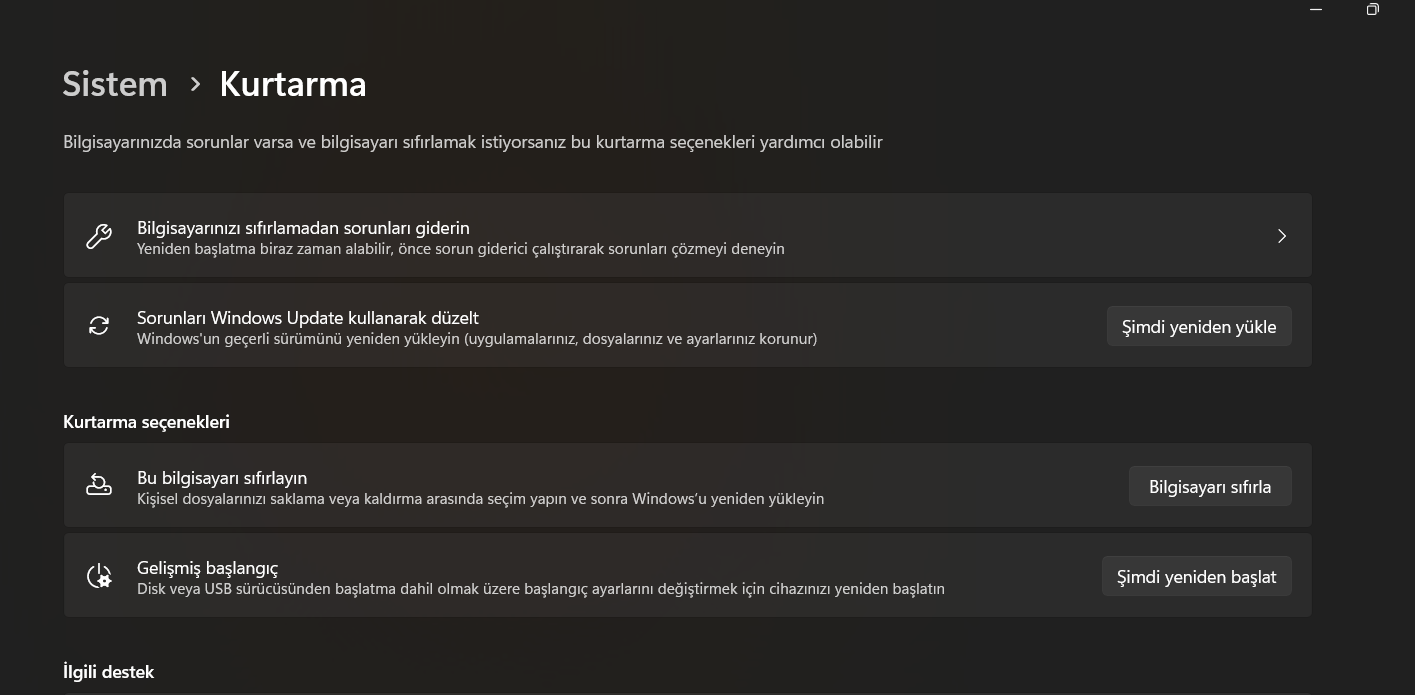 Eğer W11 kurma süreniz 1 haftayı geçtiyse geri w10'a dönemezsiniz. Eğer 3 4 gün olduysa bu ekranda ''geri dön'' seçeneği olmalıdır.
