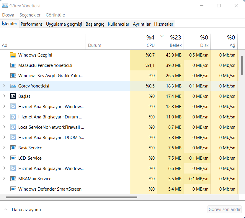 RAM kullanımı (boştayken %22-24 arası):