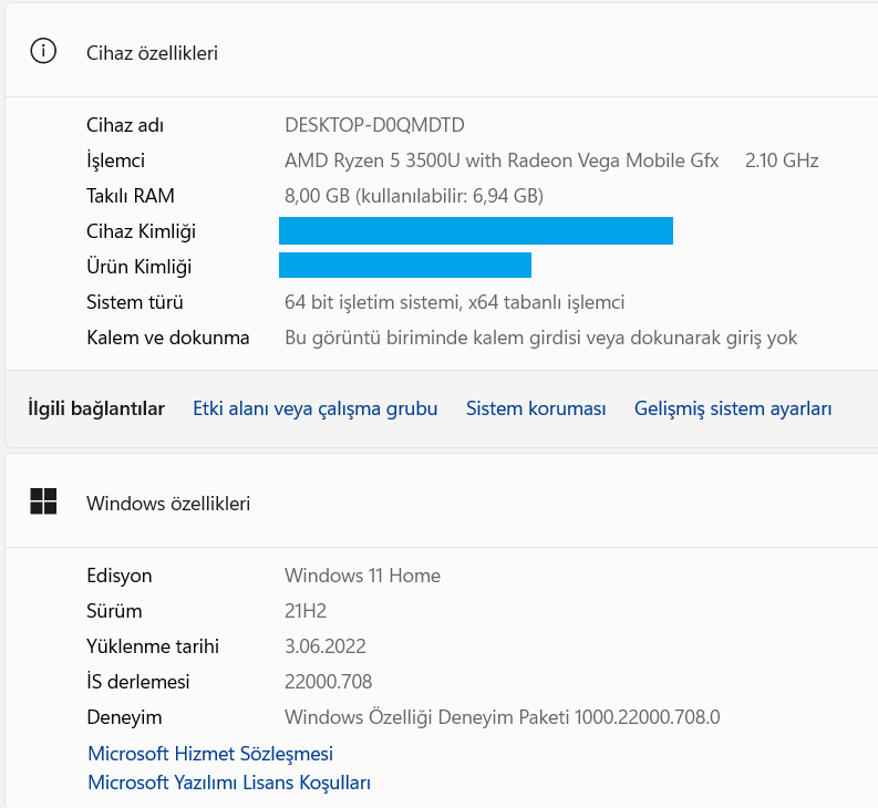 Sistem bilgilerim: