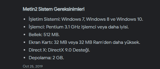 Bilgisayarım Windows 10. DirectX11 falan kurulu ve herhangi bir hata almadım başka bir oyundan ancak MT2 de sıkıntı yaratıyor. MT2 DirectX8 ile çalışıyor o yüzden bende Windows 10'a DX8 kurmak istiyorum internetten baktım bulamadım. Yardımcı olursanız sevinirim.