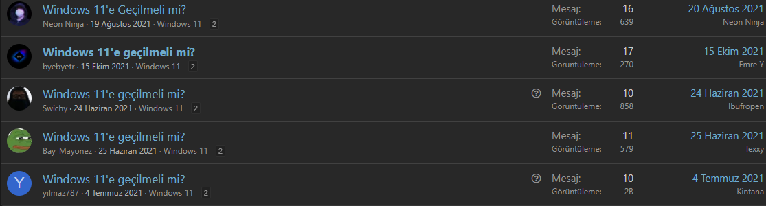 Gerçekten ne zaman Windows 11 kategorisine girsem hep aynı konular.