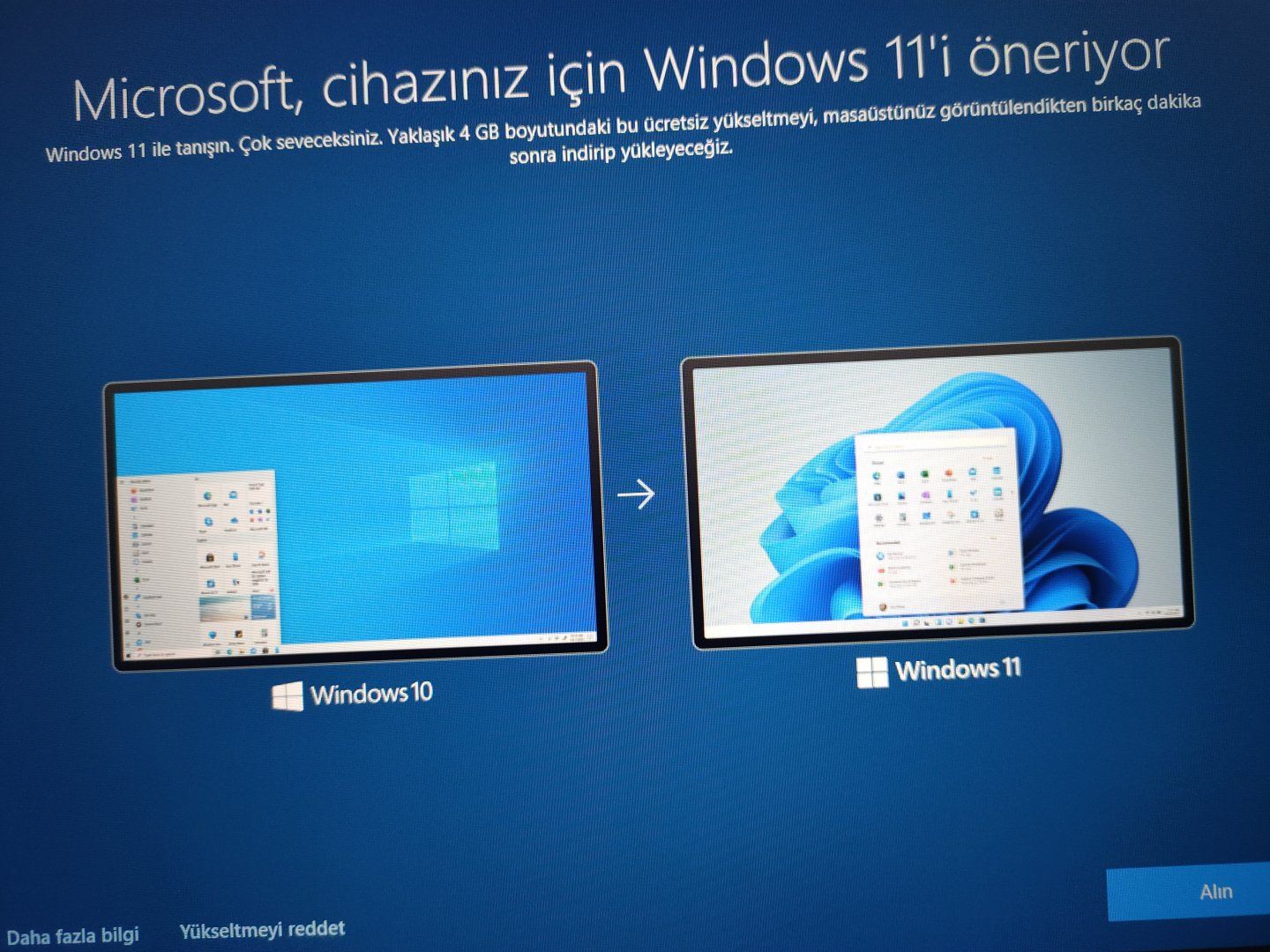 Bilgisayarda bir anda ekran çıktı W11'e ücretsiz yükseltin diye. Red edersem bir daha yükseltme şansım olacak mı olmayacak mı bilmiyorum. Şimdi yükseltme yapmalı mıyım?
