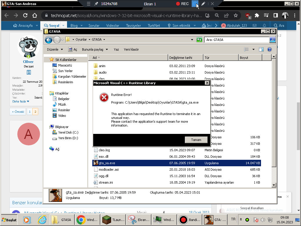 Windows 7 32 Bit Microsoft Visual C++ Runtime Library hatası