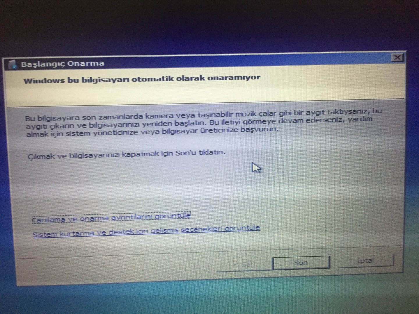 Merhaba herkese arkadaşlar ben dün laptop la oyun oynuyordum gece de her zamanki gibi bilgisayarı kapattım. Sabah açtığımda başlangıç onarımı ekranı çıktı tamam dedim bekledim. Sonra “windows bu bilgisayarı otomatik olarak onaramıyor” yazıyor. Arkadaşlar yardım edin artık sabahtan berli 100'e yakın video izledim her şeyi denedim ama olmuyor hep aynı ekran hep aynı ekran.