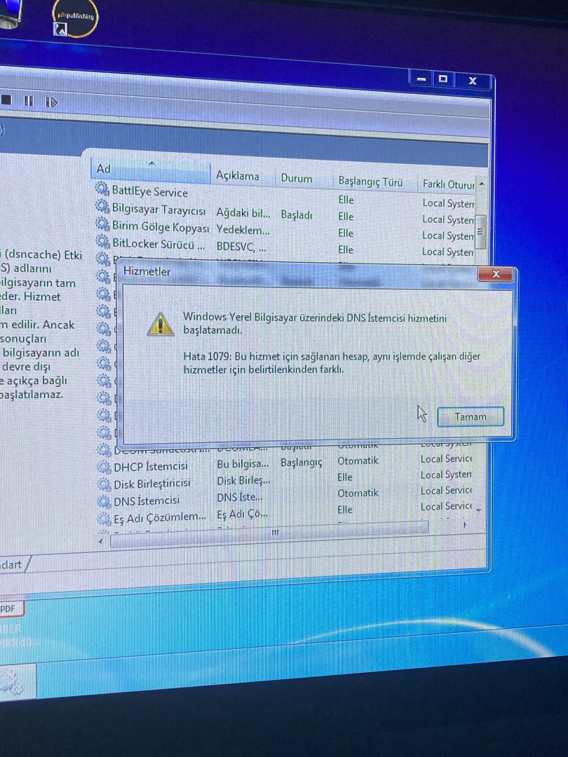Merhaba arkadaşlar, Windows 7 bilgisayarımda internetim hiçbir şekilde yok. Sorunun kaynağı ise DNS hizmetinin başlamaması, hizmeti manuel olarak çalıştırmak istiyorum ama olmuyor, şu hatayı alıyorum:
