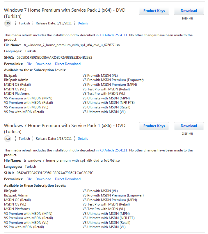 Ben eskiden Windows 7 Home Premium'u şuradan tedarik etmiştim, ISO kalıbının sha1 değeri de orijinaldi, bakabilirsiniz: