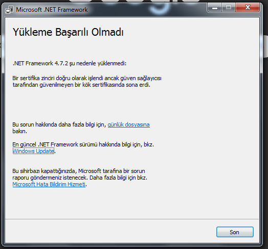 Peki nasıl çözebilirim bu sorunu?Anladığım kadarıyla Microsoft, Windows 7'deki sertifikayı doğrulamamış.