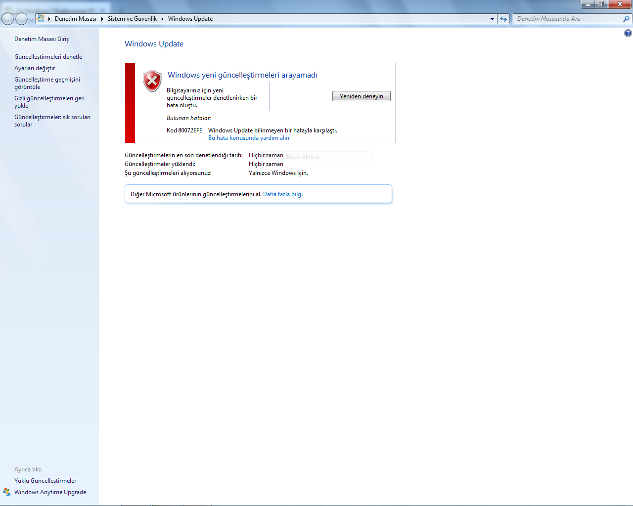 Çözüldü Windows 7 Professional "80072EFE" hatası