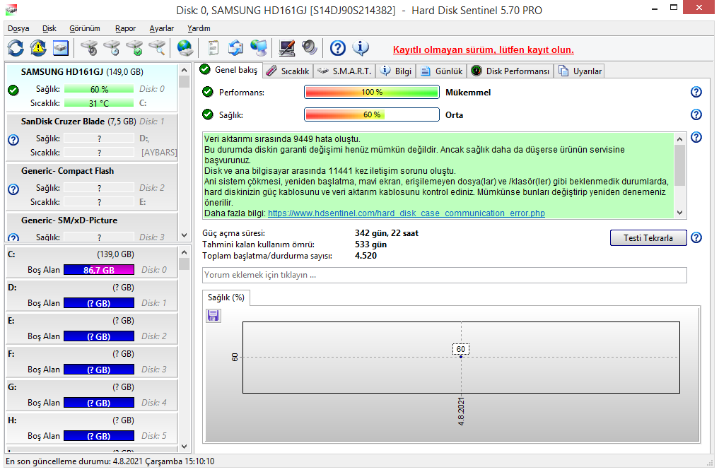 İşletim sistemim Windows 8.1 Pro.