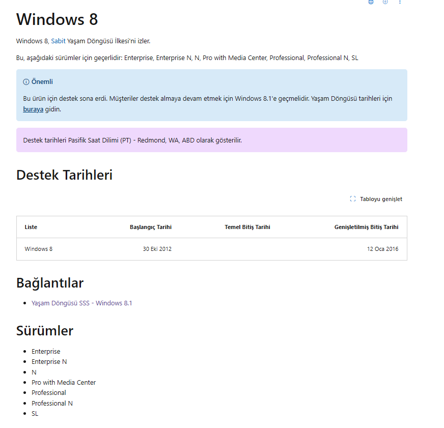 Dostlar, benim laptopum Windows 10'da kasıyor o yüzden de Windows 8.1 indirmek istemiştim. Microsoft'un kendi sitesinde indirme linki bulamadım. Böyle yazıyordu: