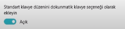 Windows 8.1 için Ayarlar + Cihazlar + Yazma + Standart klavye düzenini dokunmatik klavye düzeni olarak ekleyin, butonunu aktif edin.