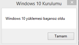 Windows 8.1'den 10'a Media Creation Tool ile yükseltirken "Yükleme başarısız oldu" hatası