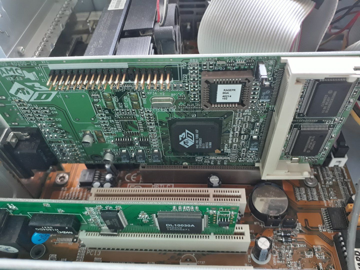 Bunlar da grafik kartı, ethernet kartı ve işlemci soğutucusu olduğunu varsaydığım parçaların yakından görüntüsü. Ayrıca dual channel RAM de bulunuyor, kaç mb olduğunu bilmiyorum maalesef. İlginç bir şekilde anakartta iki veya dört yerinde üç RAM slotu bulunuyor. O kadar da old school olmadığım için nedenin bilmiyorum, bilenler aydınlatırsa sevinirim. 🙂