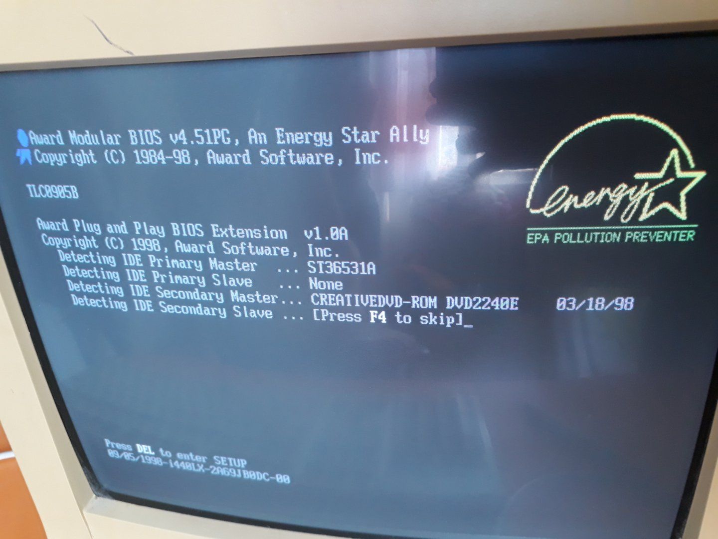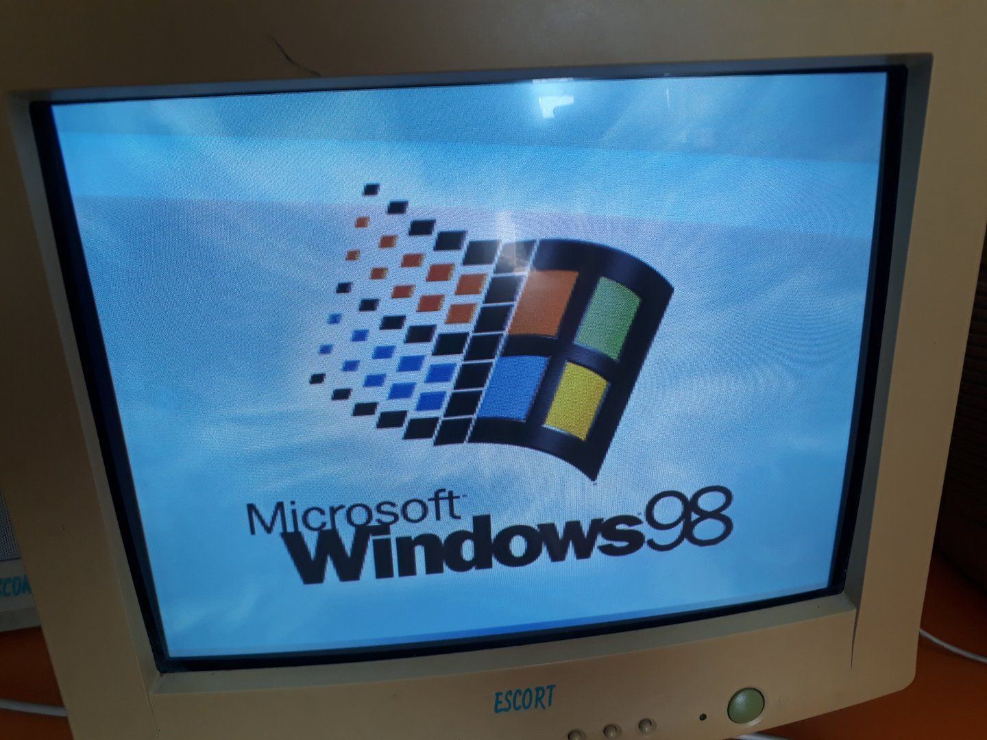 Sistem kontrolleri yaptıktan sonra CMOS checksum error hatası verdi, muhtemelen BIOS pili ile ilgili bir durumdu. F1 ile menüyü geçtikten sonra muhteşem Windows 98 startup ekranı göründü. 😁
