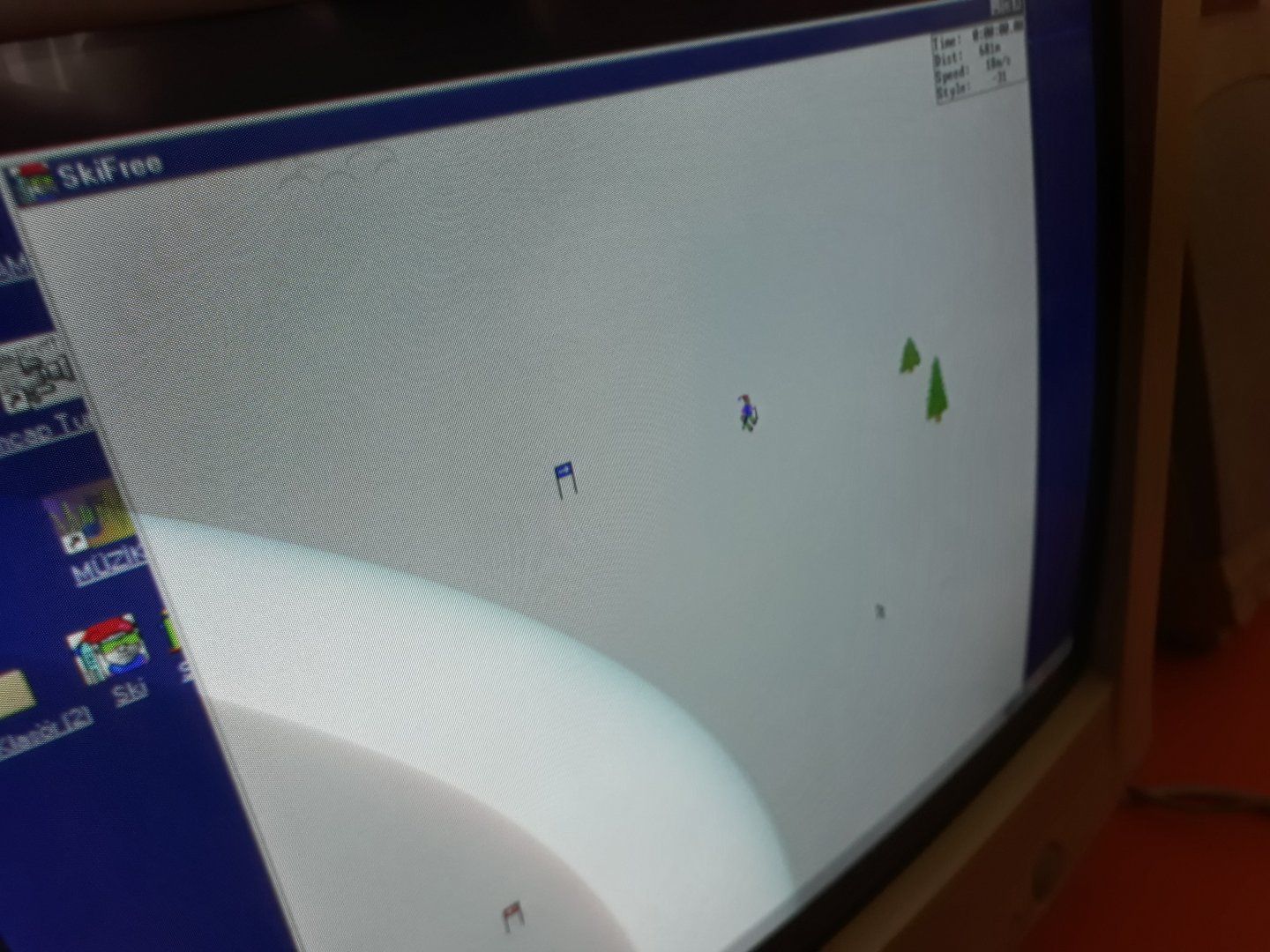 Daha önce bahsettiğim "Skii" oyunu. Küçükken oynadığımda bir yerden sonra bir ayının gelip karakteri yediğini hatırlıyorum, ama oraya kadar gelemedik maalesef. 😅