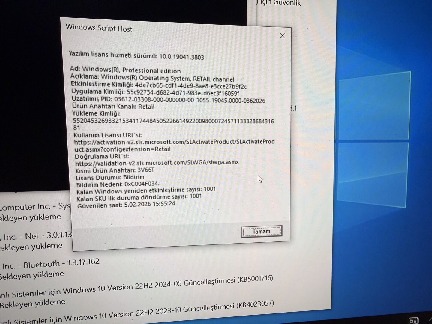 Sistemdeki anahtar generic bir anahtar (3V66T), lisans anahtarı alıp etkinleştirme yapmanız gerekiyor.