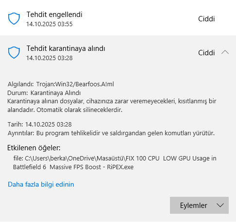 Arkadaşlar merhaba, malumunuz geçen günlerde Battlefield 6 çıkmıştı ve bilgisayarım kaldırmadığı için internette çeşitli yöntemler araştırmaya çalışmıştım belki bir nebze FPS'imi arttırabilirim diye ve gözüm kararmıştı, o oyunu ne olursa olsun oynayacaktım. En sonunda tanımadığım bir kanalın yüklediği dosyaları indirdim. Dosyalar Regedit'teki ayarları değiştirdi. Ardından Windows Defender uyarı verince bakayım dedim ve trojan script olduğunu gördüm.