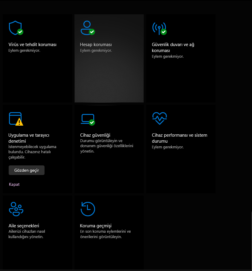 Aynı şekilde Windows Defender'da ünlem var tıklıyorum. "gözden geçir"e bastığımda yine yukarıdaki boş yere gönderiyor.