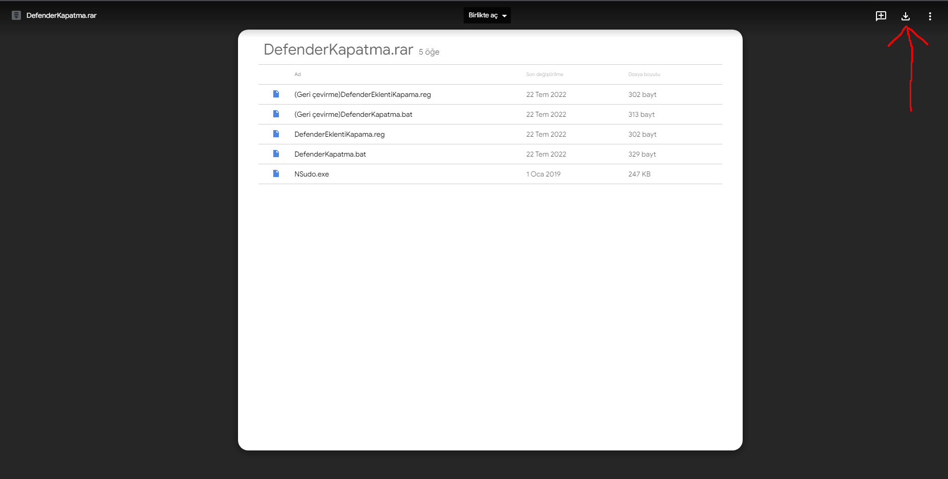 "Defendereklentikapama. Reg", "DefenderKapatma.bat" ve "NSudo.exe" adlı üç tane uygulama indirdik ve şimdi işleme geçiyoruz.