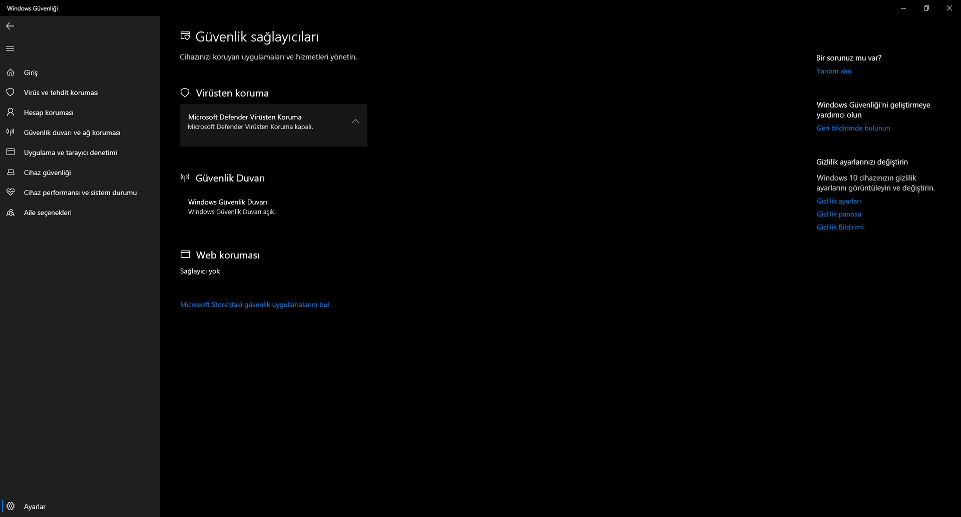 Windows Defender kullanılamıyor