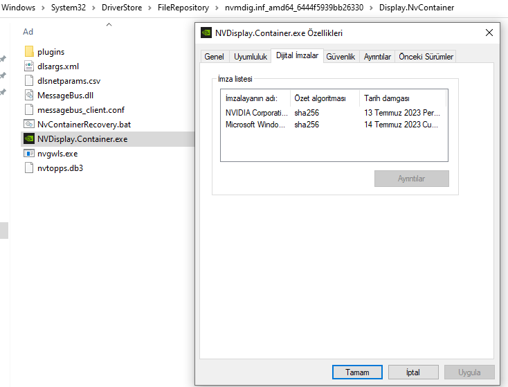 İkisinde de bulunan NVDisplay.Container exe yi tarattım ikisi de yeşil çıktı.