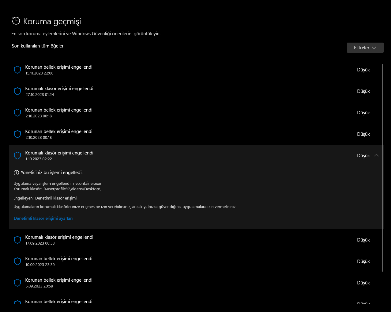 2 gün önce bilgisayarımı açtığımda masaüstü arka planım silinmiş, sağ Click yenile yapınca yenilenin çalışmadığını ve bugün ekran kartımı güncellemek istediğimde güncelleyemediğimi hata verdiğini fark ettim. Defender'ın engellediği bu dosyalara baktığımda ise çoğunun sistem dosyası hatta ''nvcontainer.exe"nin GeForce experidence'e ait bir dosya olduğunu öğrendim. Bunlar saklanmaya çalışan virüs dosyaları mı yoksa Defender sistem dosyalarımı engelleyip bilgisayarımda hata mı oluşturuyor? Bilen varsa yardımcı olursa çok sevinirim bilgisayarım bu olaydan sonra gözle görülür inanılmaz bir yavaşlama seviyesinde. Şimdiden teşekkür ederim.