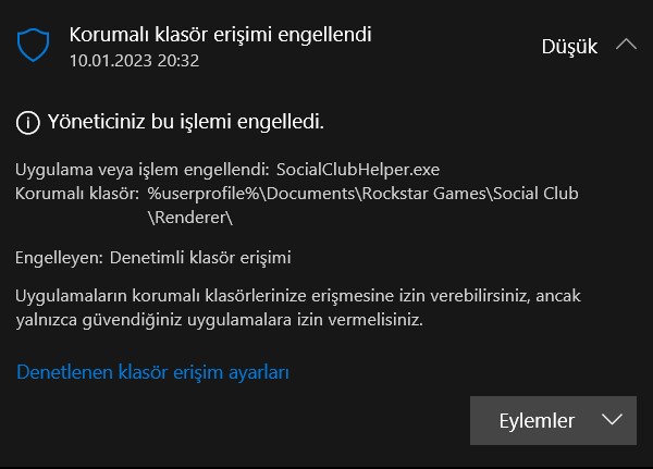 Dün ekstra olarak ayarlardan fidye yazılımına karşi korumayı (fotoğrafta verdiğim) ayarı açtım daha yararlı olur diye. RDR2 oynarken oyunu save ederken sorun çıktı ardından gelen bildirimler bu şekilde. Fidye yazılımına karşı korumayı kapalı tutarsam bir sorun olur mu sizce ya da çözümü var mı?