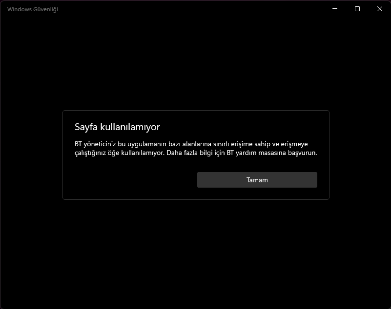 Bilgisayarımı formatladıktan sonra Windows Defender'e girememeye başladım. Alta fotoğraf olarak bırakıyorum.