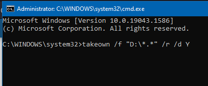 yazacağız. Ve klavyeden Enter tuşuna basacağız.Kod:takeown /f "D:\*.*" /r /d Y