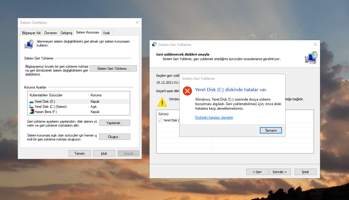 Merhaba. Bir sebepten dolayı sistem geri yüklemeyi kullanmak istiyorum ama bu hatayla karşı karşıyayım.