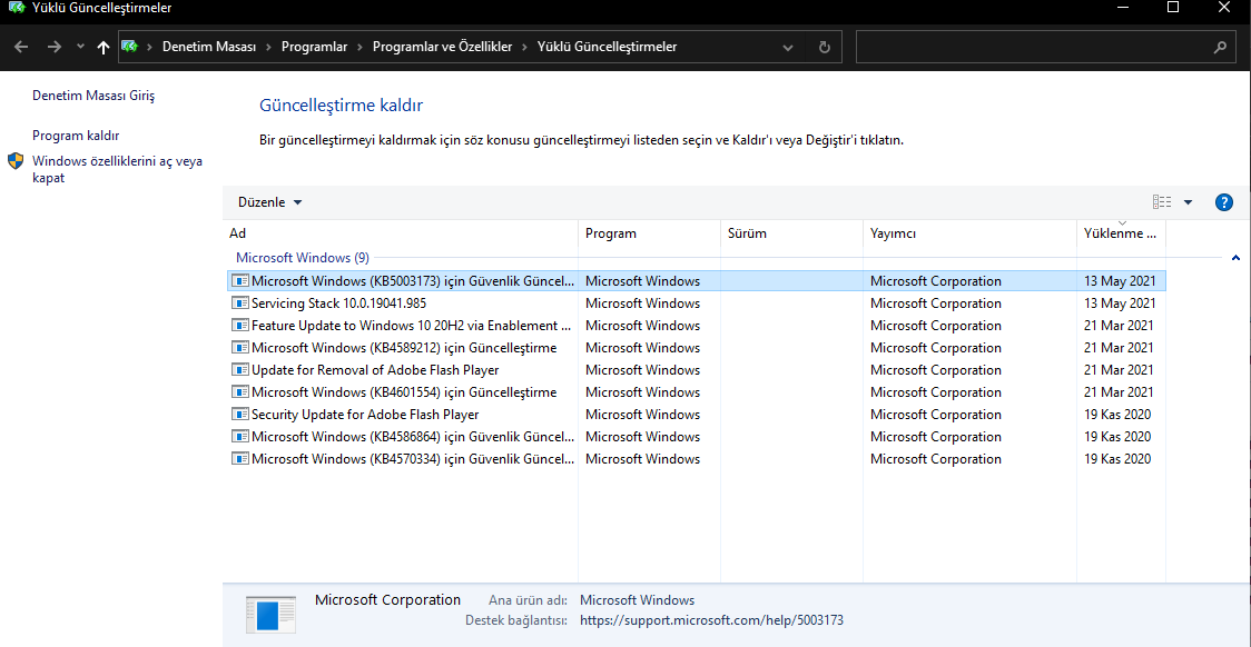 Komut istemiyle yapabiliriz o zaman hocam. Bu videoyu izleyerek komut istemi ile güncellemeleri kaldır.