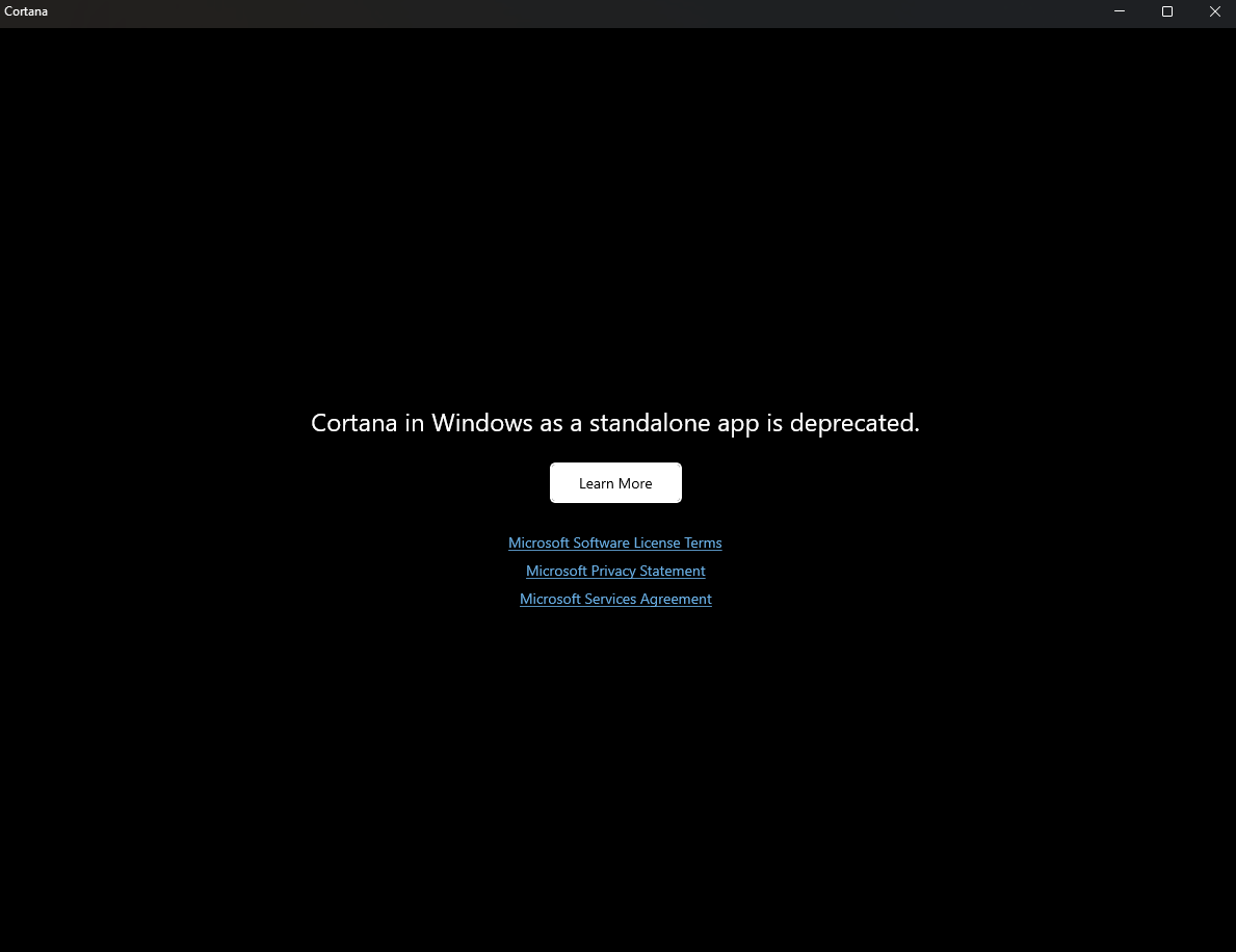 Build 2023 konferansında Microsoft, Windows Copilot'u tanıttı ve akabinde Windows 10 ile birlikte gelen Cortana için de desteğini ağustos 2023'te keseceğini duyurmuştu. Şimdi ise en son yayınlanan Windows Insider Preview yapılarından itibaren Cortana artık Windows 10 ve Windows 11'de desteklenmiyor ve erişmeye çalıştığınızda bunu göreceksiniz;