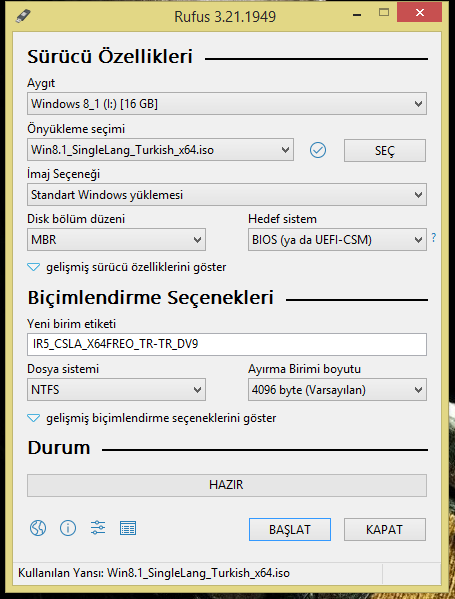 Arkadaşlar format USB'si tamam ISO'yu da yazdırdım ama boot ederken USB'yi görüyor, onu seçiyorum ama direkt normal Windows'u başlatıyor, bilen arkadaş varsa cevap verirse mutlu olurum. GPT UEFI olmuyor onu da denedim uyarı veriyor.(ayarlarda bu şekilde Rufus'ta)