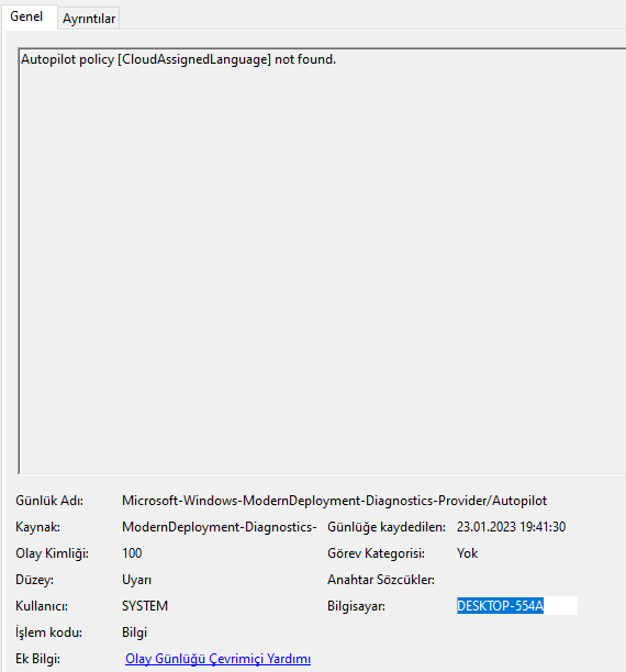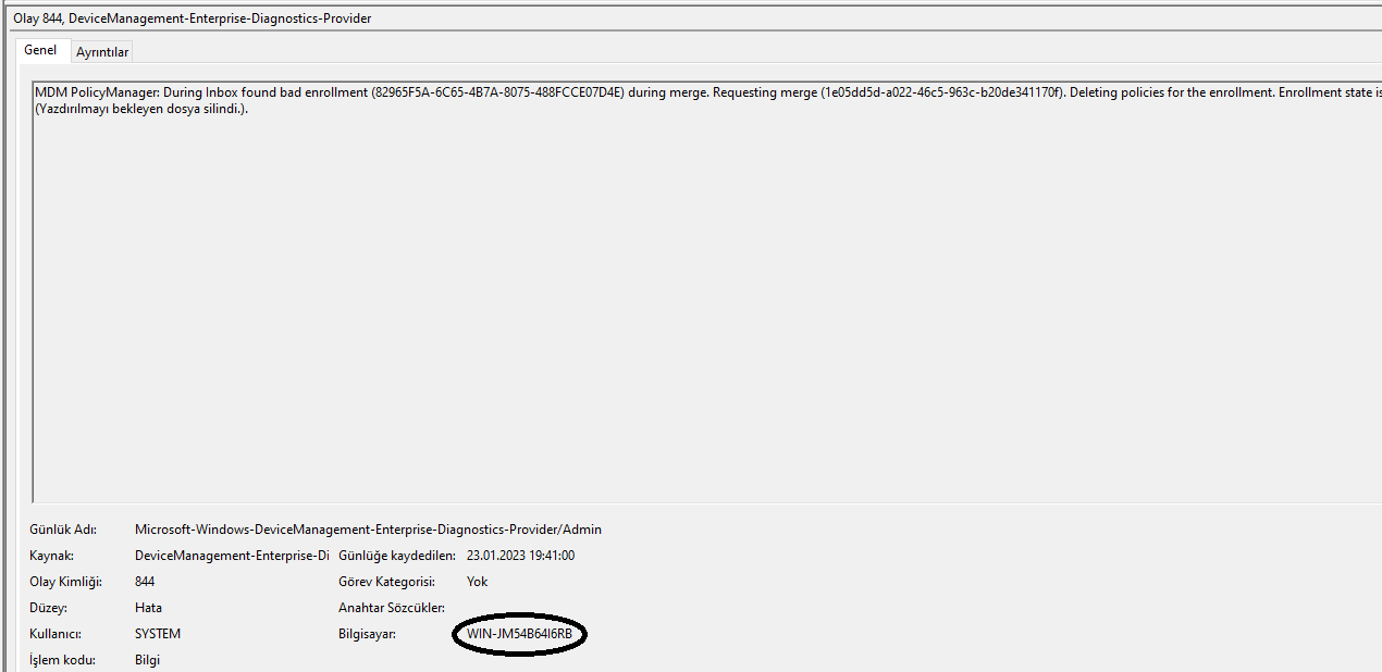 Olay görüntüleyicisinden çeşitli hataları incelerken bir şey dikkatimi çekti. Normalde benim bilgisayarın adı DESKTOP-554A*** ancak olay görüntüleyicisinde bir hatada farklı bir bilgisayar görünüyor. Bunun nedeni ne olabilir? Windows 10 Pro kullanıyorum ve lisansı saglamlisans üzerinden bir key ile etkinleştirmiştim.