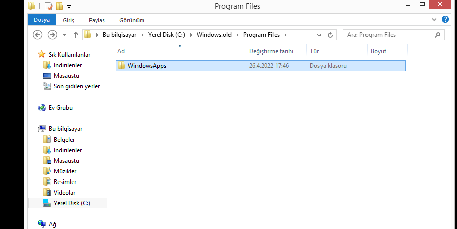 "windows.old" klasörünün içindeki bazı dosyalar silinmiyor