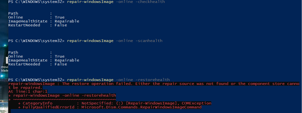 Windows'taki "ms-settings" gibi ana bileşenlerin çalışmaması üzerine Windows'u onarmaya çalıştım. İnternette bulduğum bir videodaki kodları PowerShell'e yazdım: