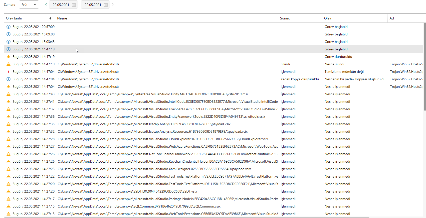 Hocam, dediğinizi yaptım ve hatanın düzelip düzelmediğini anlamak için bilgisayarı yeniden başlattım ve hata gerçekten düzeldi ama Kaspersky aşağıdaki uyarıları verdi. Söylediğiniz işlemden dolayı olmuş olabilir mi acaba? Ona göre uyarıyı görmezden geleceğim.