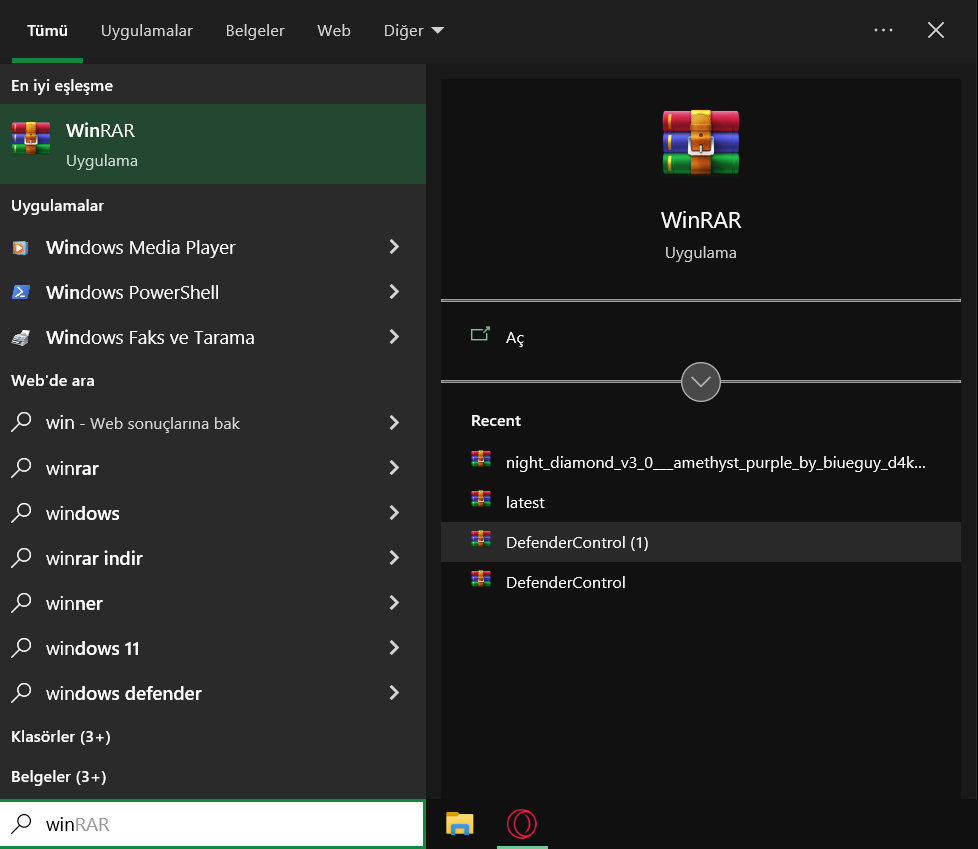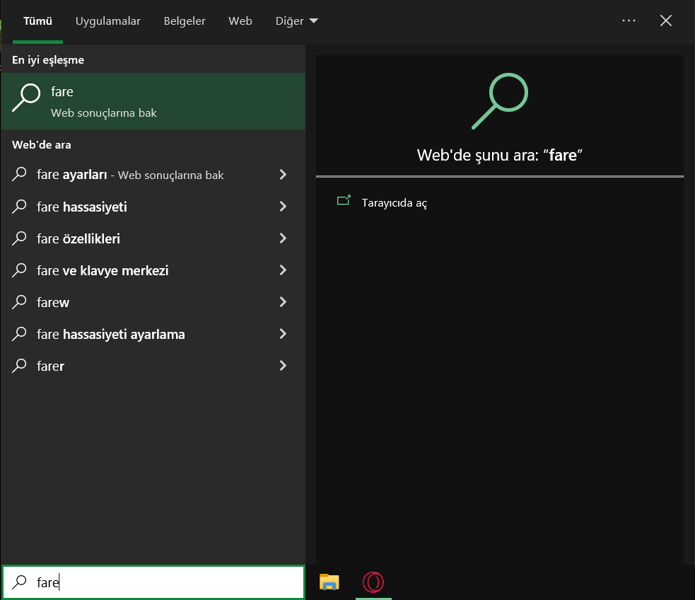 Arkadaşlar arama yerine örneğin WinRAR yazdığımda çıkıyor ama mesela fare ayarları yazınca çıkmıyor ayarlarla ilgili bir şey yazınca çıkmıyor ama indirdiğim bir şeyi aradığımda çıkıyor. Resimdeki gibi.