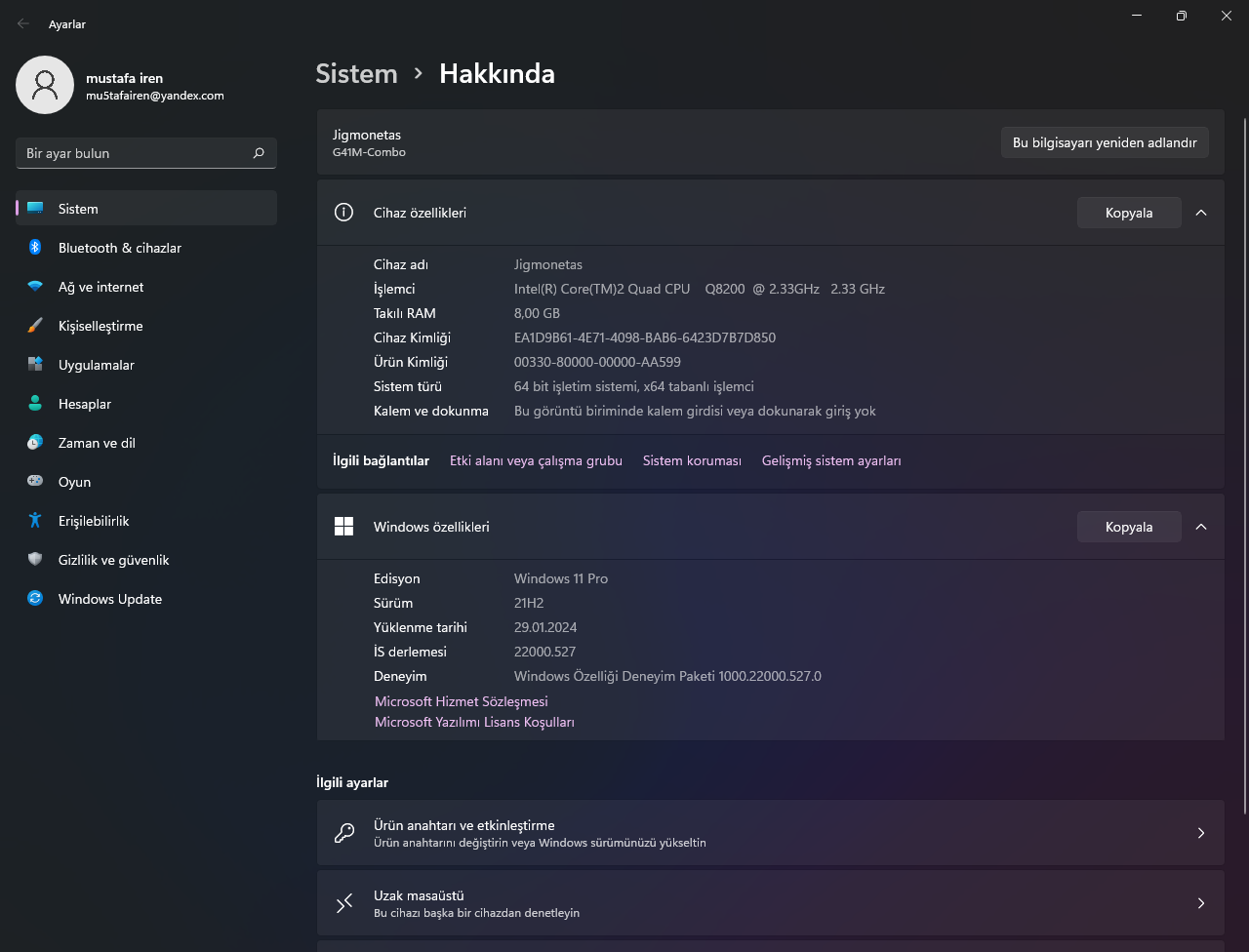 Bilgisayar dilimin İngilizce olduğunu da belirtmek isterim.