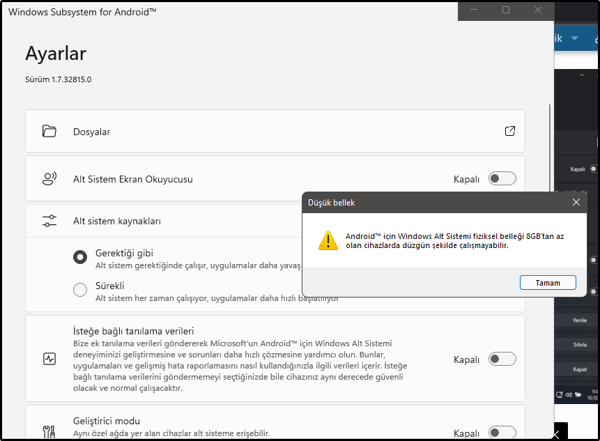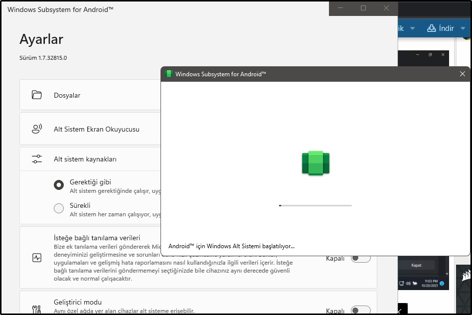 Rehber Windows Subsystem for Android tüm sürümlere kurma