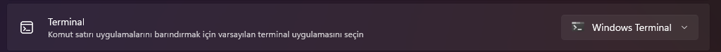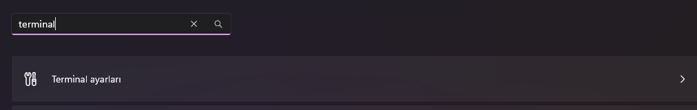 Windows ayarlarını açıp, "terminal" diye aratın ardından şuna girin: