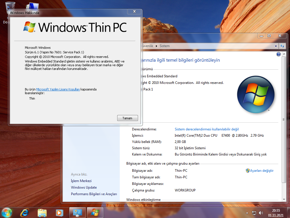 İşletim sistemi: Windows Thin PC ( Windows 7 üzerine kurulu )