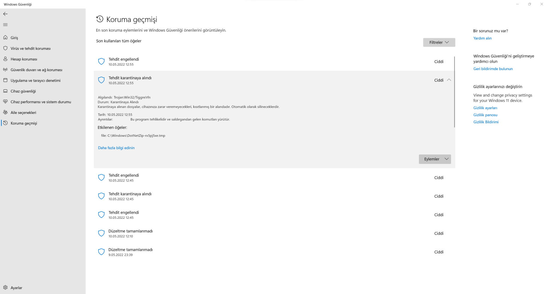 6 624739 Megapat Katılım 29 Şubat 2016 Mesajlar 5.808 Makaleler 4 Çözümler 91 10 Mayıs 2022 #2 Computer Sosyal dedi: Bu sorunu nasıl çözebiliriz? Eki Görüntüle 1383661 Genişletmek için tıkla... Açıklamada da yazıldığı üzere, bilgisayara zarar veremeyecek bir alanda olduğu icin karantina altına alınmış ve otomatik olarak silinecekmiş. Sizin yapmanız gereken herhangi bir eylem bulunmamakta.