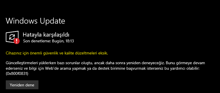 Güncellemeyi indirirken 0x800f0831 hatasını alıyorum, nasıl düzeltirim?