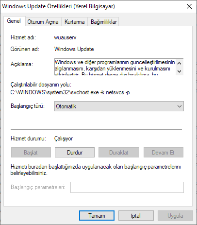 Şu hatayı alıyorum hizmetlerden Windows Update'yi etkinleştirmeye çalışınca.