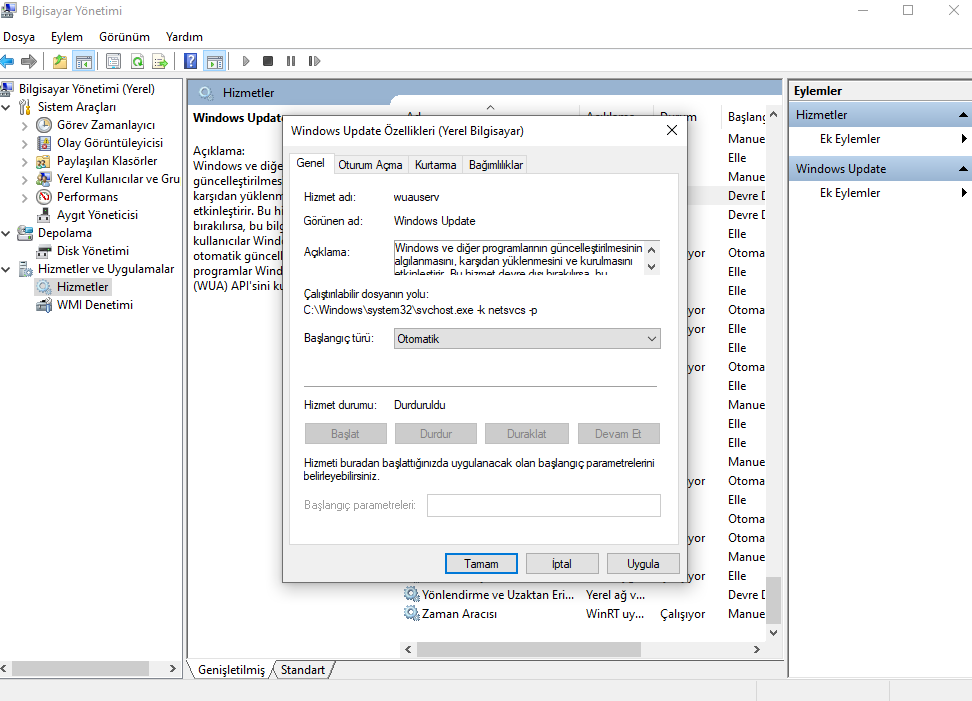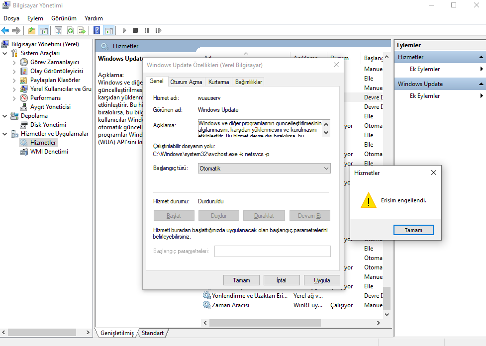 Windows Update'i çalıştıramıyorum, çalıştırmaya çalıştığımda ise erişim engellendi diyor.