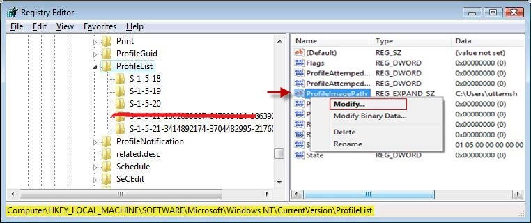HKEY_LOCAL_MACHINE\SOFTWARE\Microsoft\Windows NT\CurrentVersion\ProfileList