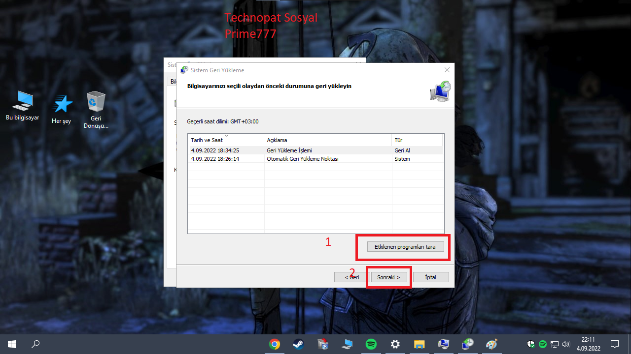 Uyarı!: Bu tarihten sonra yüklenmiş uygulamalar, ayarlar geçerli olmayacaktır. Sistem geri yükleme yaparken "Etkilenen programları tara" tıklayarak görebilirsiniz.