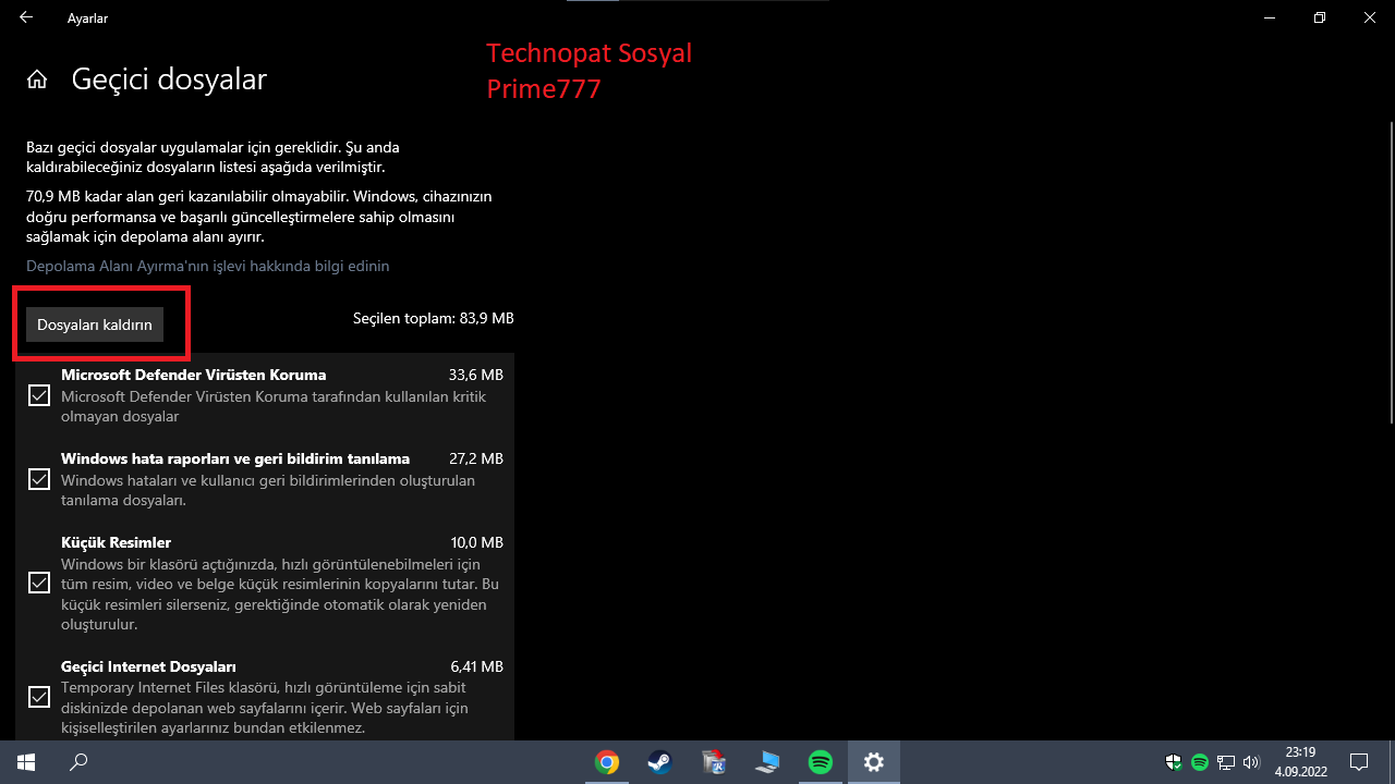 Windows'un arama yerine geçici dosyaları sil yazın ve girin, eski Windows Update dosyalarının kalıntısı varsa kaldırın.